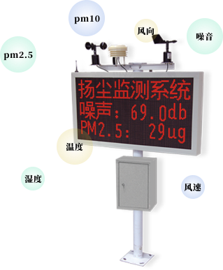 基于物聯(lián)網(wǎng)及人工智能技術(shù),利用無線傳感器技術(shù)和激光粉塵測試設(shè)備,實現(xiàn)揚塵在線監(jiān)控,可以監(jiān)測PM2.5,PM10,噪音,環(huán)境溫度,環(huán)境濕度,風速風向等各項指數(shù)。