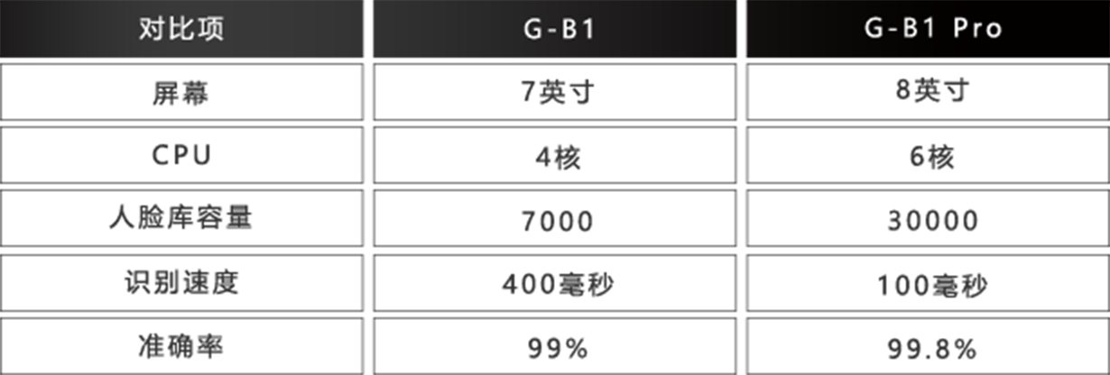 G-B1 Pro在識(shí)別速度上比上一代有所提升,識(shí)別速度達(dá)到毫秒級(jí),可精確、快速、高效進(jìn)行人臉識(shí)別,真正做到無(wú)感知通行,不用擔(dān)心排隊(duì)打卡的情況出現(xiàn),支持離線底庫(kù)識(shí)別,告別依靠本地服務(wù)器。