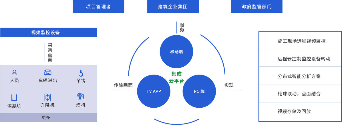 核心產(chǎn)品及應(yīng)用范圍包括:吊鉤可視化監(jiān)控系統(tǒng)、塔吊與升降機監(jiān)控系統(tǒng)、環(huán)境監(jiān)測系統(tǒng)、智能車牌識別、智能安全帽管理等安全監(jiān)控系統(tǒng)的建設(shè)使用。