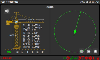顯示塔機(jī)當(dāng)前參數(shù)實時、運行狀態(tài),并對危險運行狀態(tài)進(jìn)行聲光預(yù)警提示